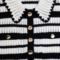 Details & Fit Channel preppy chic in this striped crochet knit. Designed for work and play, pair its cropped fit with high-waisted bottoms, and show off the revere collar with a pair of our statement earrings. - True to size - Fabric has stretch - Button closure at front - Functional pockets - Contrast detailing - Model is 5ft10/178cm and wears a size M COMPOSITION Main: 45% Cotton 42% Viscose 10% Polyamide 3% Cashmere (Other Fibres) Trim: 70% Viscose 30% Polyester