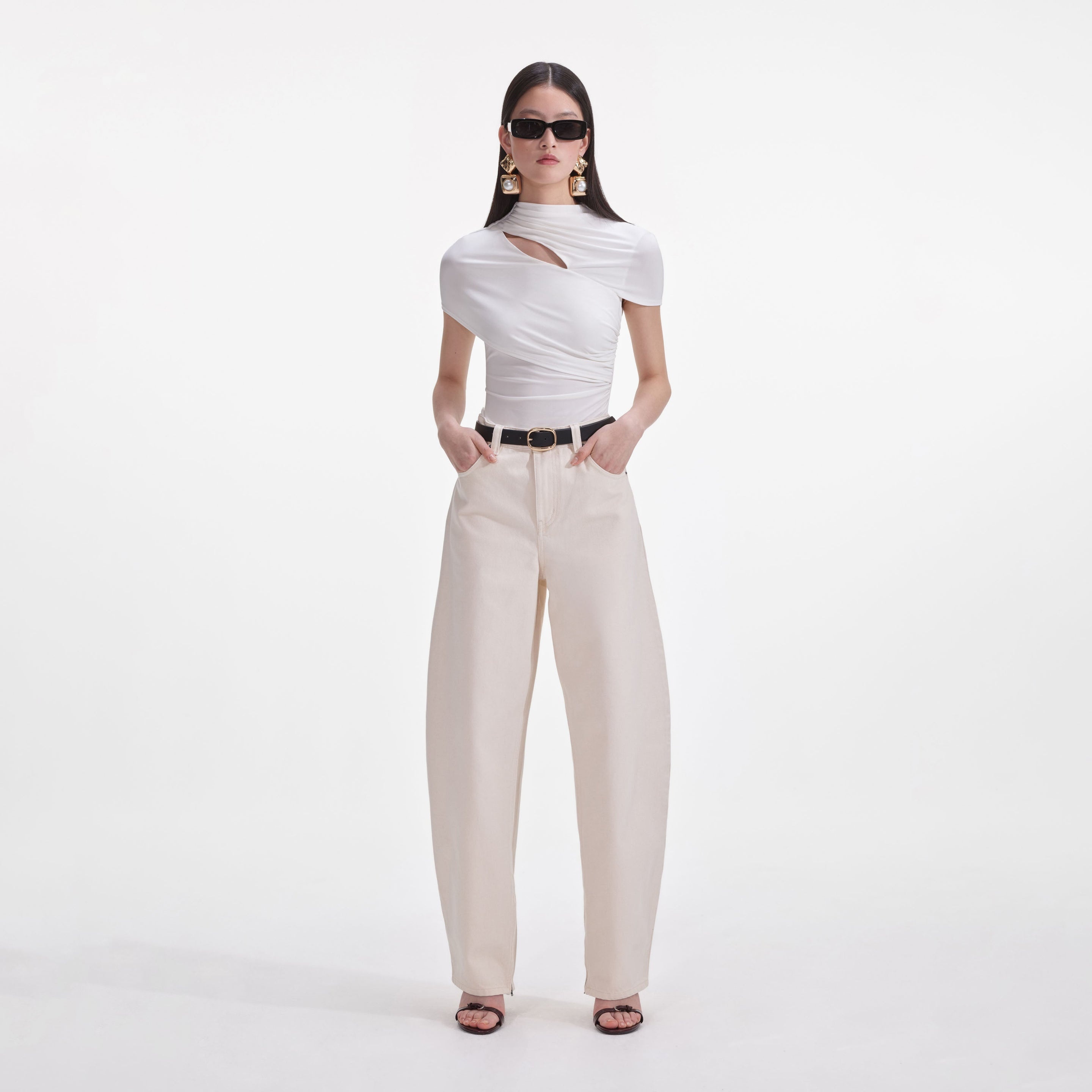 Details & Fit A refined take on party style, this cream jersey top plays well with jeans and minis alike. The bold cut-out adds intrigue to the high neckline – pair with our statement earrings for full impact. - True to size - Fabric has stretch - Unlined style - Keyhole opening at shoulder - Model is 5ft10/178cm and wears a size uk 6 - Check the Size Guide to find your perfect fit COMPOSITION Main: 93% Polyester 7% Elastance Lining: 93% Polyester 7% Elastance