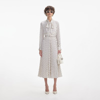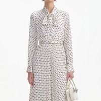 Details & Fit Effortlessly ladylike in polka dot satin, this year-round midi — with its pussy bow neckline and full skirt — is swathed in retro charm. Accentuate the look with our statement gold jewellery.