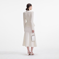 Cream Sequin Knit Tailored Midi Dress