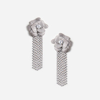 Details & Fit Frame the face to dazzling effect with these crystal embellished flower earrings, dripping with glittering droplets. Wear with a flowing gown and sparkling mini bag to your next black-tie affair.Frame the face to dazzling effect with these crystal embellished flower earrings, dripping with glittering droplets. Wear with a flowing gown and sparkling mini bag to your next black-tie affair. - Silver plated brass - Crystal and diamante embellishment - Stud backing - Length: 4cm Height: 11cm - Silver plated brass - Crystal and diamante embellishment - Stud backing - Length: 4cm Height: 11cm COMPOSITION Main Body1: Hypoallergenic Plated Brass Accessory: Glass Stone, Zircon, Teel Needle, Crystals Main Body1: Hypoallergenic Plated Brass Accessory: Glass Stone, Zircon, Teel Needle, Crystals