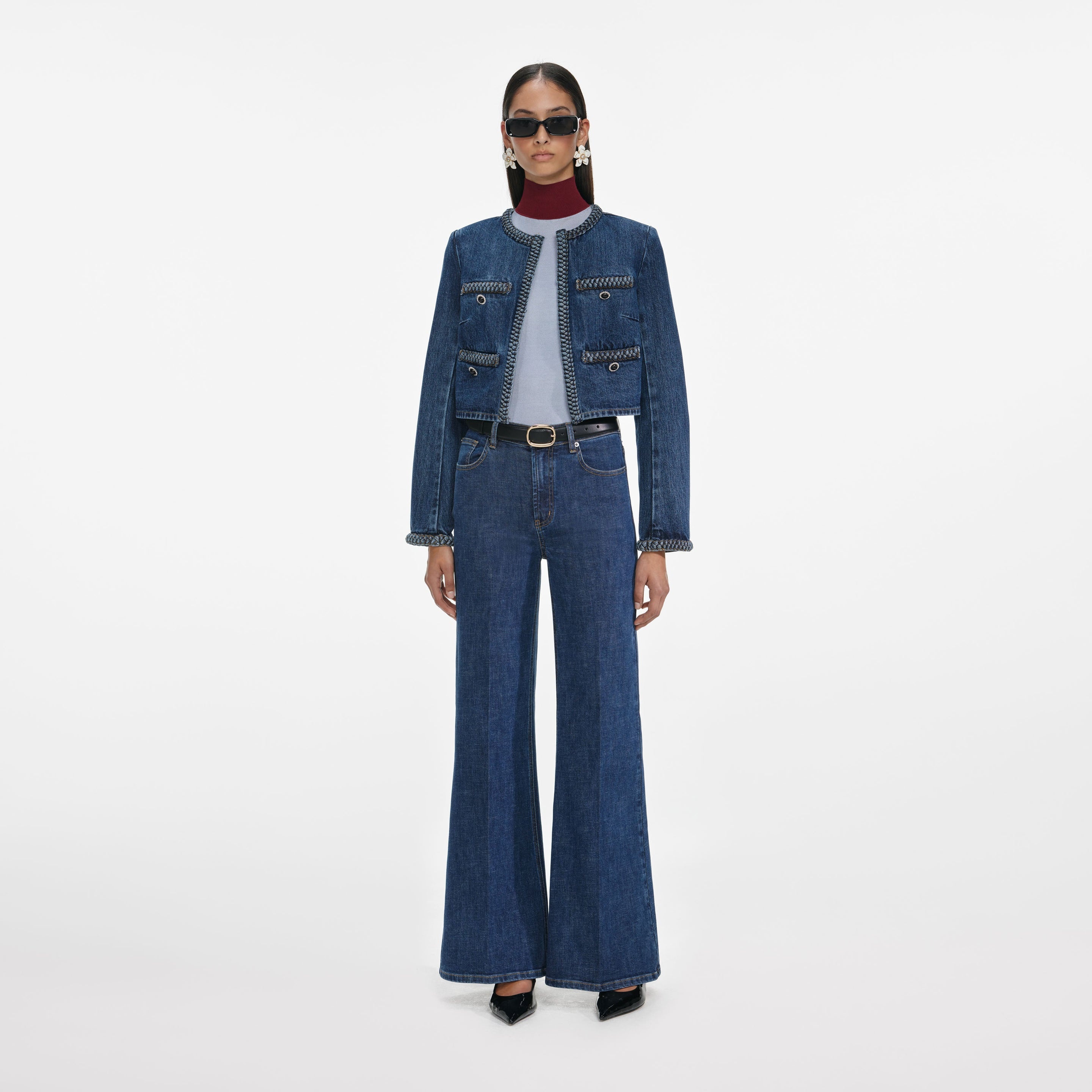 Details & Fit An all-American staple goes ultra-polished in this denim jacket, with its braided trims and embellished diamante buttons. Pair with the matching mini skirt for a flirty take on the Texas tuxedo.An all-American staple goes ultra-polished in this denim jacket, with its braided trims and embellished diamante buttons. Pair with the matching mini skirt for a flirty take on the Texas tuxedo. - Fitted style, take one size up if between sizes - This style has minimal stretch - Hook & bar closure down front - Braided trims - Matching skirt available - Model is 5ft10/178cm and wears a size UK 6 - Fitted style, take one size up if between sizes - This style has minimal stretch - Hook & bar closure down front - Braided trims - Matching skirt available - Model is 5ft10/178cm and wears a size UK 6 COMPOSITION 100% Cotton 100% Cotton