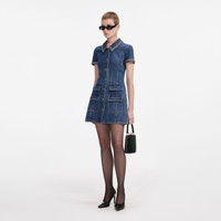 Denim Crystal Trim Collared Mini Dress