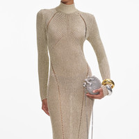 Details & Fit Metallic gold knit gives this irresistibly flattering dress a tactile feel and photo-friendly shimmer. Add stilettos and show off its high neck design with statement earrings at your next soiree. COMPOSITION Main: 65% Viscose 35% Metallised Fibre