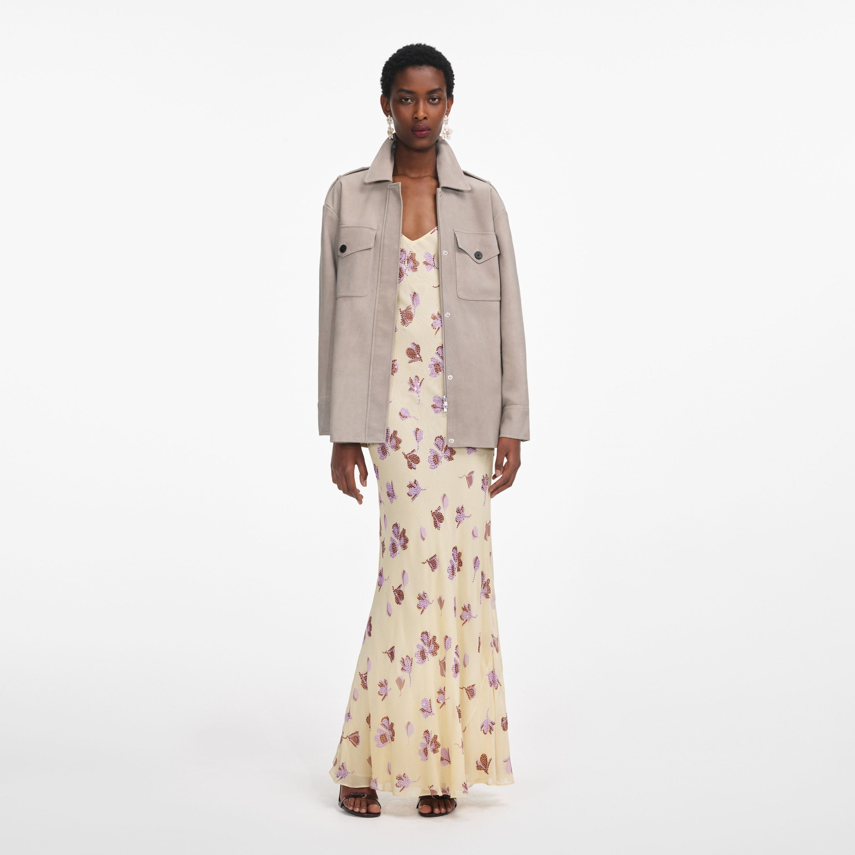 Details & Fit A wear-anywhere jacket, this grey suede number’s relaxed cut is designed for easy layering. With functional pockets, throw it on over off-duty denim and slip dresses alike.A wear-anywhere jacket, this grey suede number’s relaxed cut is designed for easy layering. With functional pockets, throw it on over off-duty denim and slip dresses alike. - True to size - Relaxed fit - Concealed zip closure at front - Functional pockets - Model is 5ft10/178cm and wears a size UK 6 - Check the Size Guide to find your perfect fit - True to size - Relaxed fit - Concealed zip closure at front - Functional pockets - Model is 5ft10/178cm and wears a size UK 6 - Check the Size Guide to find your perfect fit COMPOSITION Outer: Lambs Suede Lining: 100% Polyester Outer: Lambs Suede Lining: 100% Polyester