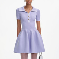 Details & Fit An effortless one-and-done option, this lilac rib knit minidress brings a sense of joy to every occasion. With a revere collar and gold buttons, the flared hem pairs well with sneakers or heels. - True to size - Fabric has stretch - Button closure down front - Flared hem - Model is 5ft10/178cm and wears a size S - Check the Size Guide to find your perfect fit COMPOSITION Main: 50% Viscose 32% Polyester 16% Polyamide 2% Elastane Lower Body: 100% Polyester