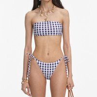 Details & Fit Cut from navy gingham jersey for retro-chic glamour, these bikini briefs feature adjustable ties at the side for a leg-lengthening fit. Pair with the matching top for poolside glamour. Cut from navy gingham jersey for retro-chic glamour, these bikini briefs feature adjustable ties at the side for a leg-lengthening fit. Pair with the matching top for poolside glamour. - True to size - Fabric has stretch - Side ties with gold stopper detail - Contrast edge binding - Matching top available - Model is 5ft10/178cm and wears a size UK 6 - True to size - Fabric has stretch - Side ties with gold stopper detail - Contrast edge binding - Matching top available - Model is 5ft10/178cm and wears a size UK 6 COMPOSITION 82% Polyamide 18% Elastane 82% Polyamide 18% Elastane