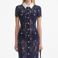 Details & Fit Timeless elegance comes courtesy of this navy lace midi dress which stars a chic contrast collar and shining gold buttons. Style with heels and our statement jewellery for the next soiree. Timeless elegance comes courtesy of this navy lace midi dress which stars a chic contrast collar and shining gold buttons. Style with heels and our statement jewellery for the next soiree. - Fitted style, take one size up if between sizes - This style has minimal stretch - Diamante button opening down front - Detachable cami lining - Functional pockets - Model is 5ft10/178cm and wears a size UK 6 - Fitted style, take one size up if between sizes - This style has minimal stretch - Diamante button opening down front - Detachable cami lining - Functional pockets - Model is 5ft10/178cm and wears a size UK 6 COMPOSITION Main Fabric: 70% Polyamide 30% Cotton Trim Fabric: 100% Polyester Exclusive Of Trimmings Cami: Detachable Lining: 100% Polyester Main Fabric: 70% Polyamide 30% Cotton Trim Fabric: 100% Polyester Exclusive Of Trimmings Cami: Detachable Lining: 100% Polyester