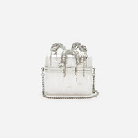 Details & Fit Make a modern statement with this pearlised vanity case, topped with a large embellished bow that stars extra crystal droplets. Add our statement earrings as the final flourish for every occasion. - Acrylic exterior - Magnetic closure - Removable shoulder chain COMPOSITION Outer: 100% Acrylic Lining: 97% Polyester 3% Elastane