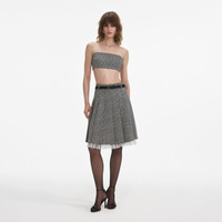 Details & Fit A flirty take on a tailoring classic, this Prince of Wales check bandeau top puts a daring spin on masculine suiting. Style with high-waisted denim for music festivals and girls’ night out alike.A flirty take on a tailoring classic, this Prince of Wales check bandeau top puts a daring spin on masculine suiting. Style with high-waisted denim for music festivals and girls’ night out alike. - Fitted style, take one size up if between sizes - This style has minimal stretch - Zip closure at back - Lined at bodice and skirt - Asymmetric hem - Model is 5ft10/178cm and wears a size UK 6 - Fitted style, take one size up if between sizes - This style has minimal stretch - Zip closure at back - Lined at bodice and skirt - Asymmetric hem - Model is 5ft10/178cm and wears a size UK 6 COMPOSITION Main Fabric : 66% Polyester 31% Viscose 3% Elastane Lining : 100% Polyester Main Fabric : 66% Polyester 31% Viscose 3% Elastane Lining : 100% Polyester