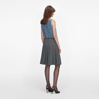 Grey Herringbone Pleated Midi Skirt