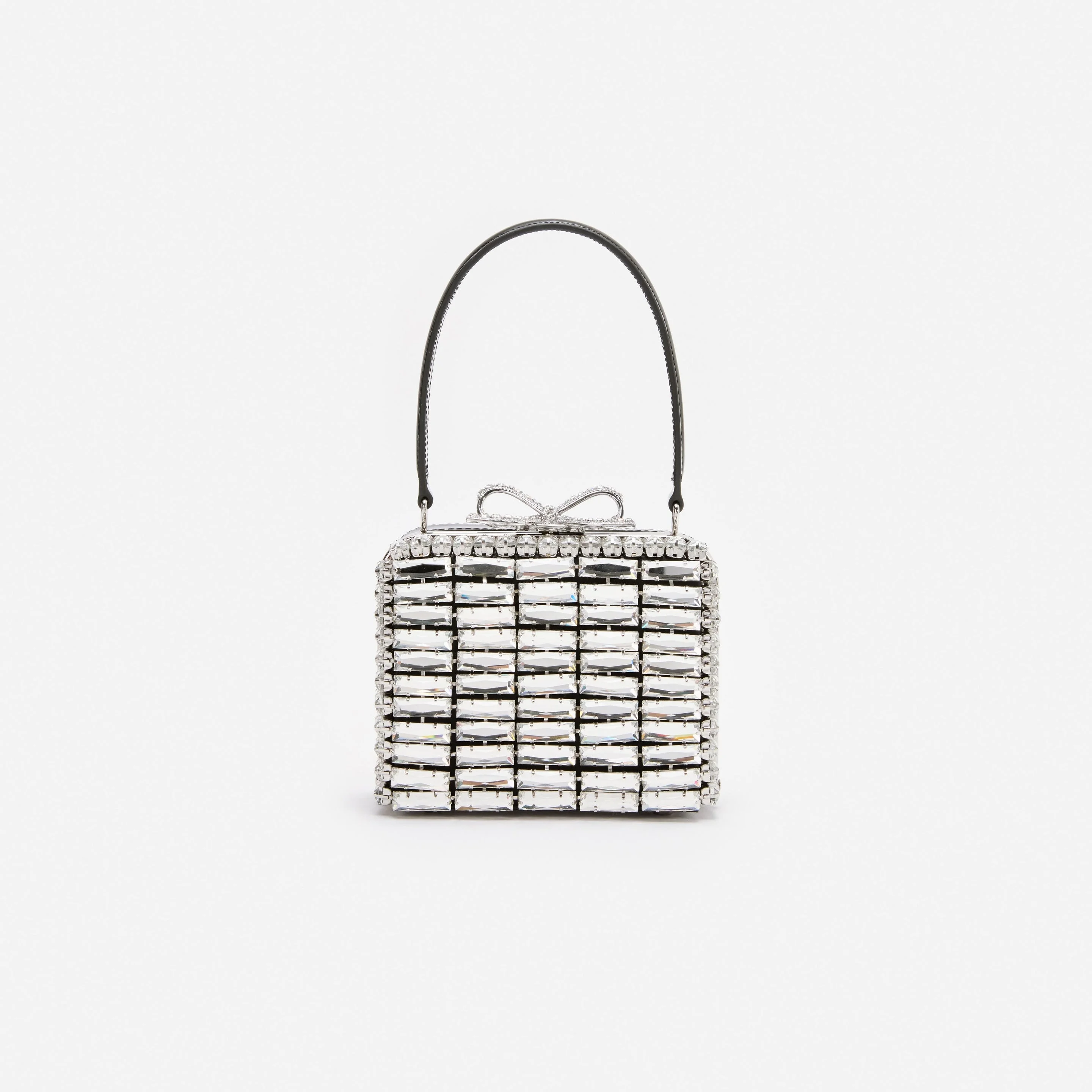 Details & Fit Shine from all angles with this silver micro bag, embellished all over with light-catching crystals. Accented by a top handle and sparkling bow – make it the centrepiece of your after-dark look. - Silver crystal exterior - Clasp fastening - Silver crystal bow motif - Top handle Composition Outer: 100% Cow Leather Lining: 100% Synthetic Leather