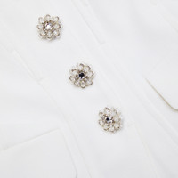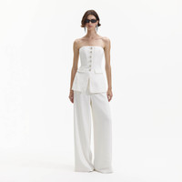 Details & Fit Considered minimalism meets party-ready flair in this jumpsuit, cut from crepe for its satisfying drape. Its waist-cinching bodice is studded with diamante buttons above flowing trousers. - Fitted style, take one size up if between sizes - This style has minimal stretch - Top and trousers detachable - Invisible zip closure at back of bodice - Zip closure at waist - Model is 5ft10/178cm and wears a size 8 COMPOSITION Main Fabric: 100% Polyester Lining 1: 100% Polyester Lining 2: 88% Polyester 12% Elastane