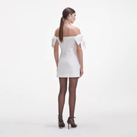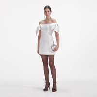 - Fitted style, take one size up if between sizes - This style has minimal stretch - Zip closure at back - Internal corset - Oversized bow details - Model is 5ft10/178cm and wears a UK size 6 COMPOSITION Main Fabric 1: 100% Polyester Main Fabric 2: 100% Polyester Lining 1: 100% Polyester Lining 2: 85% Polyester 15% Elastane