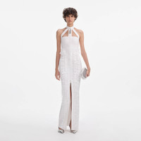 Details & Fit White hot: this bodycon dress exudes sensuality to the max with its daring chest cut-outs, flirty lace ruffles and diamante-encrusted zipper. Pull up from the hem to reveal a sultry centre split. - True to size - Fabric has stretch - Exposed zip closure down front - Unlined style - Silver diamante zip pull - Model is 5ft10/178cm and wears a size UK 6 COMPOSITION Main: 71% Viscose 27% Polyamide 2% Elastane Lace: 100% Polyaminde
