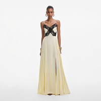 Details & Fit Inject a splash of colour into every occasion with this yellow satin maxi. Spaghetti straps and dramatic lace trims add sensual detail – show off its sultry split with a pair of strappy sandals. - Fitted style, take one size up if between sizes - This style has minimal stretch - Button closure at back - Fully lined - Cut-outs at side - Model is 5ft10/178cm and wears a size UK 6 COMPOSITION 96% Polyester 4% Elastane