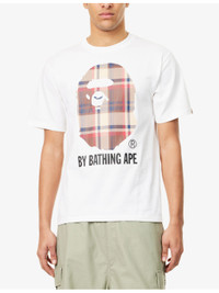 PRODUCT DETAILS - A Bathing Ape cotton-jersey T-shirt - 100% cotton - Regular fit, ribbed crewneck, short sleeves, check print ape head and brand print at front - Machine wash at 40°C - Model is 6ft 2in/1.88m and wears a size medium - Lightweight, stretchy Ref: R04562062