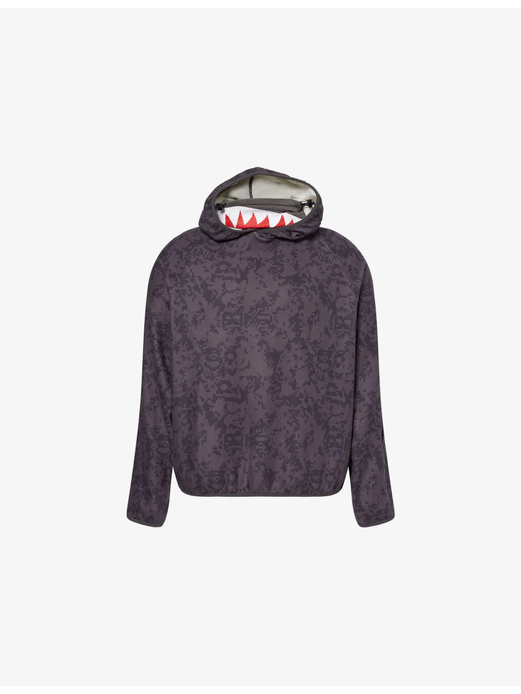 PRODUCT DETAILS - Bape x Kazuki fleece hoody - 100% polyester - Pressed stud fastening at front - Fixed hood, adjustable shark mask, long raglan sleeve, panelled, embroidered detailing at sleeve, binding at trims, all-over patterned - Machine wash at 40°C - Model is 6ft 2in/1.88m and wears a size medium - Lightweight, slight stretch Ref: R04488762