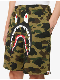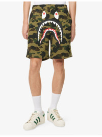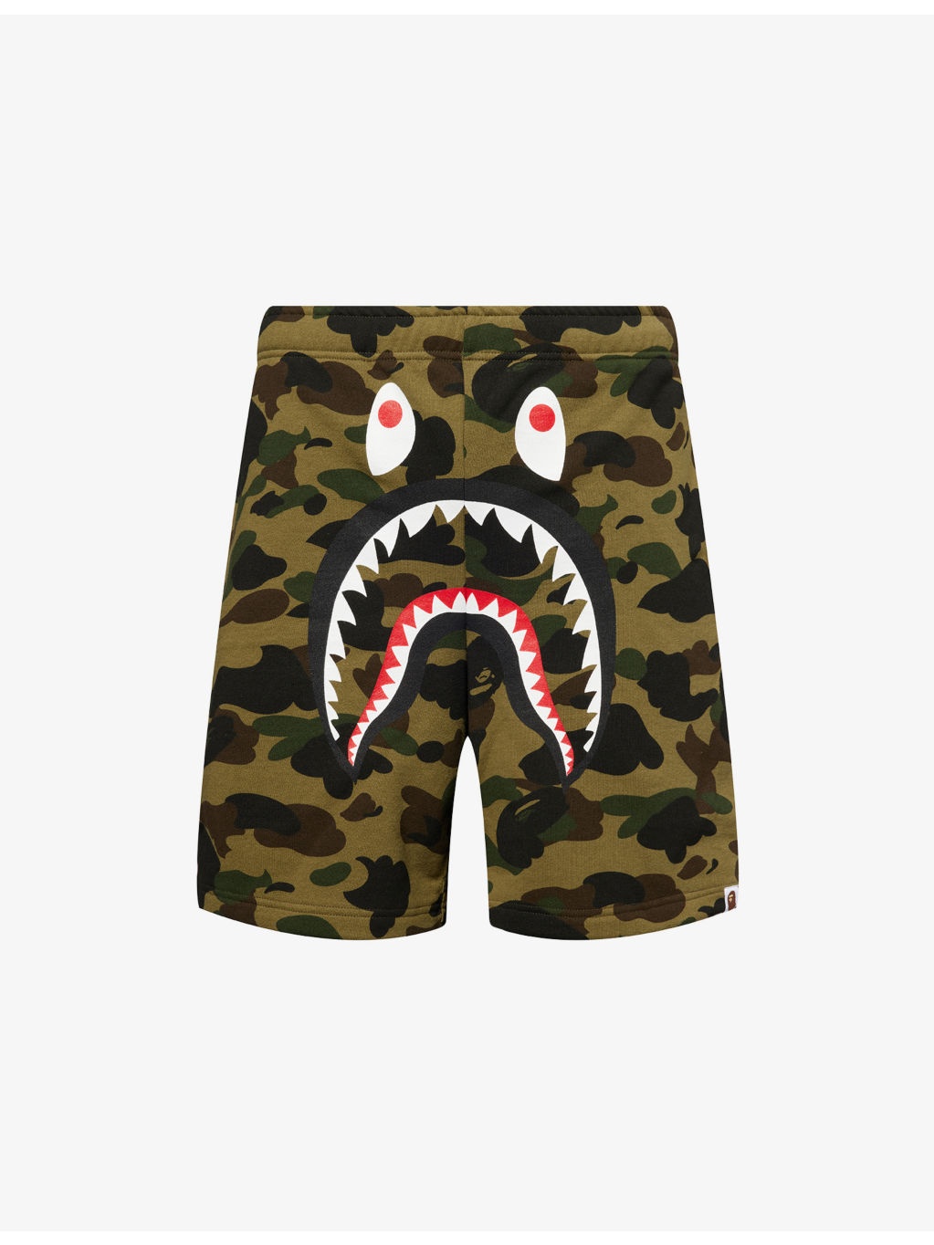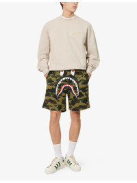 PRODUCT DETAILS - A BATHING APE cotton Sweat Shorts - 100% cotton - Relaxed fit, drawstring waist, side pockets, all-over camo print, shark print at front, patch pocket at back - Machine wash mild - Model is 6ft 2in/1.88m and wears a size medium - Midweight, slight stretch Ref: R04437919