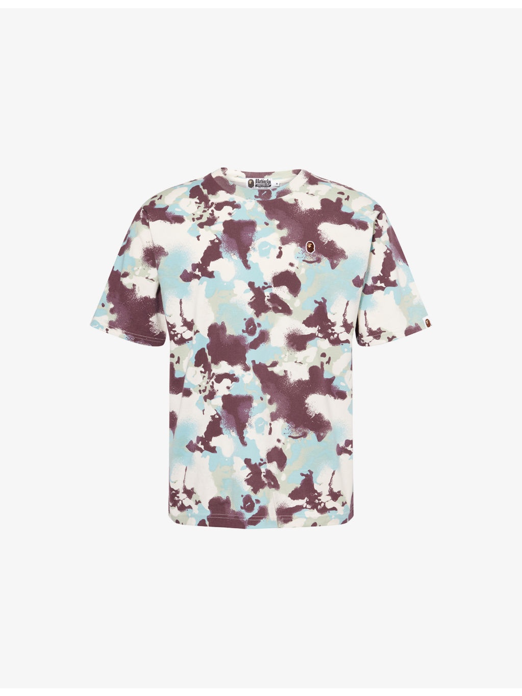 PRODUCT DETAILS - A Bathing Ape cotton-jersey T-shirt - 100% cotton - Regular fit, crewneck, ribbed trim at neck, short sleeves, brand embroidered applique at chest, camo pattern - Machine wash cold - Made in Japan - Model is 6ft 2in/1.88m and wears a size medium - Lightweight, slight stretch Ref: R04435984