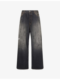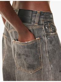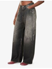 PRODUCT DETAILS - Acne Studios denim jeans - 100% cotton - Exposed button and concealed button-fly fastening at front - Relaxed fit, high-rise, wide leg, belt loops, five pockets, abstract print at front, brand patch at back, faded wash - Hand wash cold - True to size - Made In Italy - Size small: rise 14in / 36cm, inside leg 29in / 74cm, leg opening 22in / 56cm - Model is 5ft 10in/1.78m and wears a size small - Midweight, slight stretch Ref: R04492146