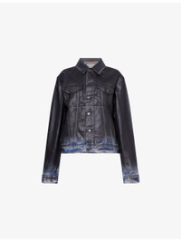 PRODUCT DETAILS - Acne Studios denim jacket - 60% cotton, 40% lyocell - Button fastening at front - Regular fit, classic collar, long sleeves, buttoned cuffs, flap pockets at chest, welt pockets at side, adjustable tabs at hem, coated - Machine wash cold - Made in Italy - True to size - Size small/medium: length 23in / 59cm - Model is 5ft 10in/1.78m and wears a size small - Midweight, non-stretch Ref: R04562017