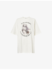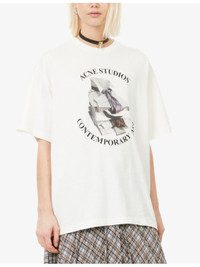 PRODUCT DETAILS - Acne Studios cotton-jersey T-shirt - 100% cotton - Relaxed fit, ribbed round-neck, short sleeves, brand and graphic print at front - Machine wash at 30°C - Made in Portugal - True to size - Model is 5ft 10in/1.78m and wears a size small - Midweight, slight stretch Ref: R04582940