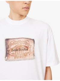 PRODUCT DETAILS - Acne Studios cotton t-shirt - 100% cotton - Crewneck, short sleeves, embroidered design at front, straight hem - Machine wash at 30°C - Made in Portugal - Model is 6ft 2in/1.88m and wears a size medium - Lightweight, non-stretch Ref: R04493819