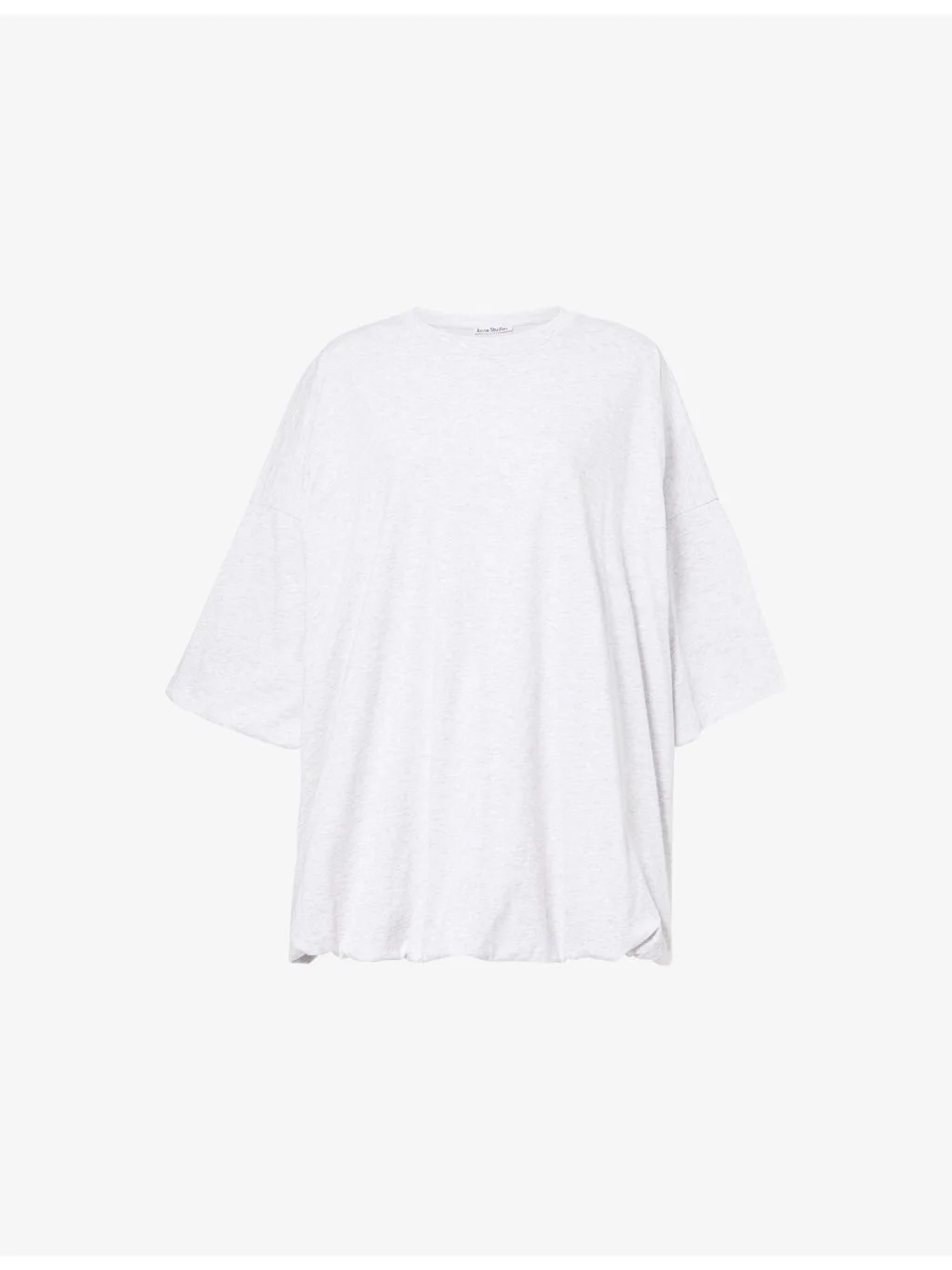 PRODUCT DETAILS - Acne Studios cotton-jersey T-shirt - 100% cotton - Oversized fit, round-neck, ribbed trim at neck, voluminous gathered short sleeves, large brand patch at back, voluminous gathered hem, jersey texture - Machine wash at 30°C - Made in Portugal - True to size - Model is 5ft 10in/1.78m and wears a size small - Lightweight, slight stretch Ref: R04582937