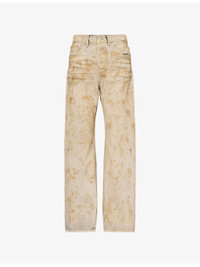 PRODUCT DETAILS - Acne Studios denim jeans - 100% cotton - Button and button-fly fastenings at front - Loose fit, mid-rise, wide leg, belt loops, five pockets, faded wash, all-over stain pattern - Machine wash at 30°C - Made in Italy - True to size - Size 27: rise 12in / 31cm, inside leg 31in / 79cm, leg opening 21in / 53.5cm - Model is 5ft 10in/1.78m and wears a size 27 - Midweight, non-stretch Ref: R04562025