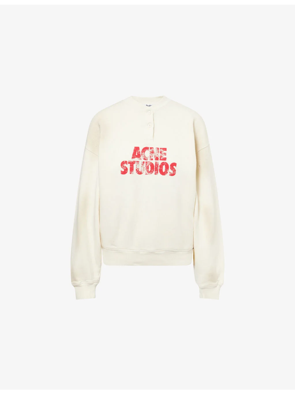 PRODUCT DETAILS - Acne Studios cotton sweatshirt - 100% cotton - Pulls on - Relaxed fit, round neck with button opening, long sleeves, ribbed trims, logo print at front - Machine wash mild - True to size - Model is 5ft 10in/1.78m and wears a size small - Midweight, slight stretch Ref: R04582934