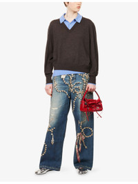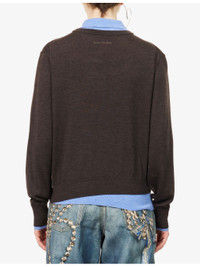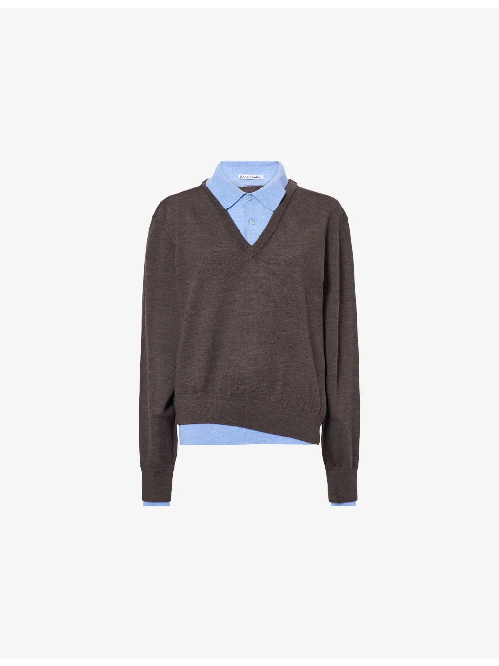 PRODUCT DETAILS - Acne Studios wool jumper - 100% wool; contrast 100% wool - Exposed button fastenings at front - Regular fit, polo collar, two-button placket, long sleeves, ribbed trims, logo embroidered at back, layered construction, contrast underlayer - Hand wash - True to size - Model is 5ft 10in/1.78m and wears a size small - Midweight, slight stretch Ref: R04582920