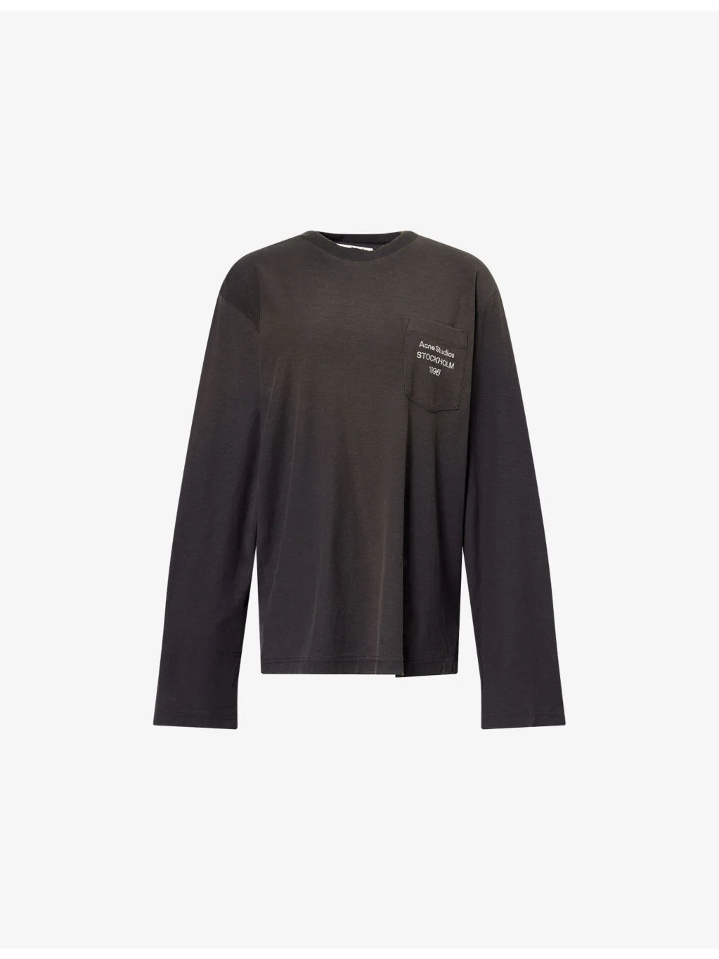 PRODUCT DETAILS - Acne Studios cotton-blend T-shirt - 85% cotton, 15% hemp - Relaxed fit, round neck, long sleeves, patch pocket and logo print at chest, distressed trims - Machine wash cold - Made in Portugal - True to size - Model is 5ft 10in/1.78m and wears a size small - Lightweight, slight stretch Ref: R04562020