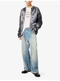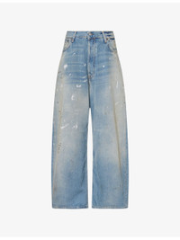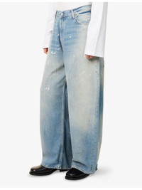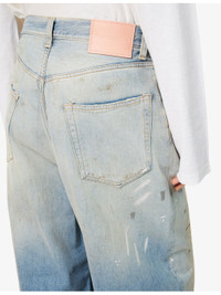 PRODUCT DETAILS - Acne Studios denim jeans - 60% cotton, 40% lyocell - Button and button-fly fastening - Wide-leg, belt loops, five pockets, brand patch at back, slight distressed detailing, painted marks, faded wash - Machine wash cold - Size 32/32: rise 14in / 35cm, inside leg 29in / 73.6cm, leg opening 24in / 60cm - Model is 6ft 2in/1.88m and wears a size UK 32 - Midweight, non-stretch Ref: R04467432