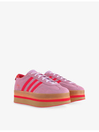 PRODUCT DETAILS - adidas suede low-top trainers - 100% leather - Lace-up fastening - Low top, round closed toe, contrasting logo at side, gold-toned foiled logo at side, branded tongue, branded footbed, panelled design, striped platform sole - Specialist leather clean - Upper: 100% suede - Lining: 100% textile - Sole: 100% rubber Ref: R04513346