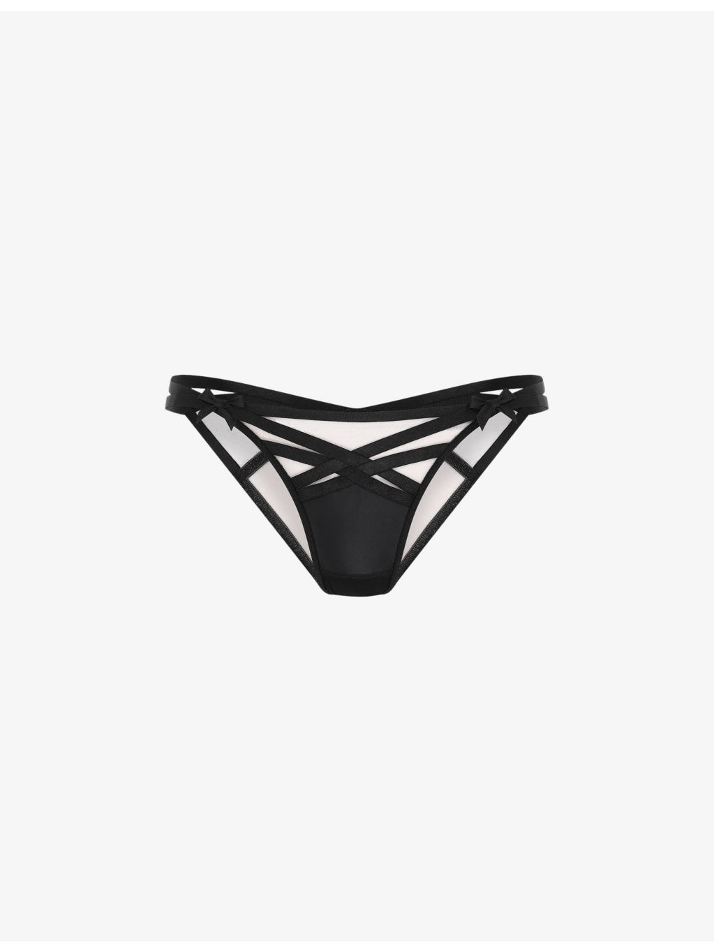 PRODUCT DETAILS - Agent Provocateur woven briefs - 100% polyamide - Slips on - Open elastic strapping detailing, bow embellishment at front, lined gusset, minimal coverage - Hand wash - True to size - Midweight, non-stretch
