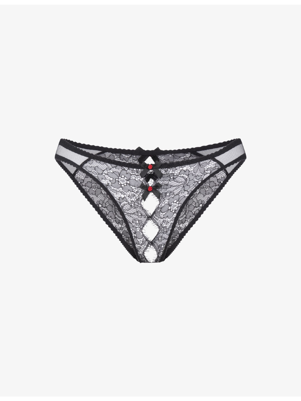 PRODUCT DETAILS - Agent Provocateur lace and mesh briefs - 65% polyamide, 35% viscose; mesh shell 100% polyester - Slips on - Low rise, satin bows with rose detailing at front, panelled design, picot edge, medium coverage, semi sheer - Hand wash - Model is 5ft 7in / 1.70m and wears a size UK 8 - Lightweight, slight stretch