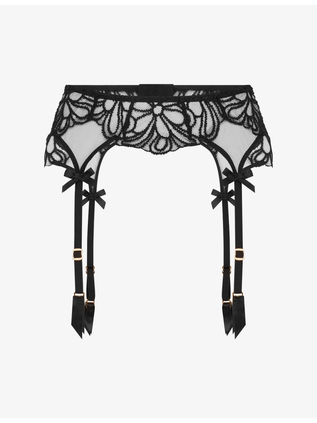 PRODUCT DETAILS - Agent Provocateur mesh suspender belt - 100% polyester - Hook-and-eye fastening - High-rise, embroidered, bow-embellishment - Hand wash - True to size - Lightweight, slight stretch Ref: R04526338