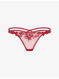 PRODUCT DETAILS - Agent Provocateur lace thong - 100% polyamide; embroidery 100% polyester; lining 100% cotton; elastic band 86% polyester, 14% elastane; bow 100% polyester - Low rise, elasticated waistband, double elastic straps, floral embroidery, satin bows at front and back, G-string back - Hand wash cold - True to size - Lightweight, slight stretch - For hygiene reasons, we are unable to exchange or refund this product, unless faulty. Ref: R04561963