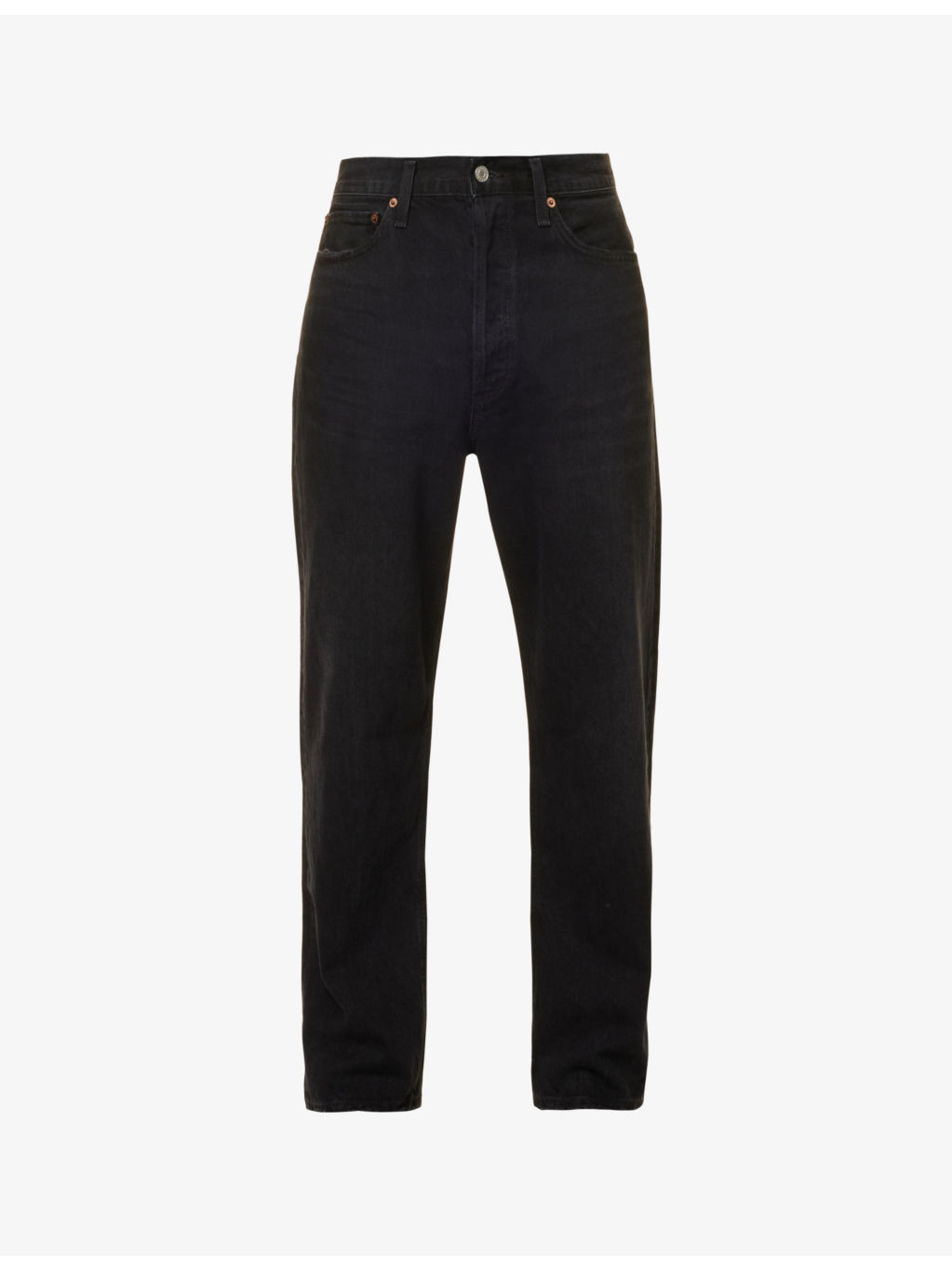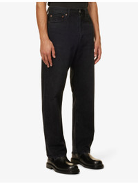 PRODUCT DETAILS - AGOLDE organic-denim jeans - 100% organic cotton - Button and button-fly fastening at front - Relaxed fit, mid-rise, straight leg, belt loops, five pockets, branded hardware, distressed hems, partially lined - Machine wash cold - Size UK 30: rise 12in / 31cm, inside leg 29in / 74cm, leg opening 16in / 41cm - Model is 6ft 2in/1.88m and wears a size UK 30 - Midweight, non-stretch
