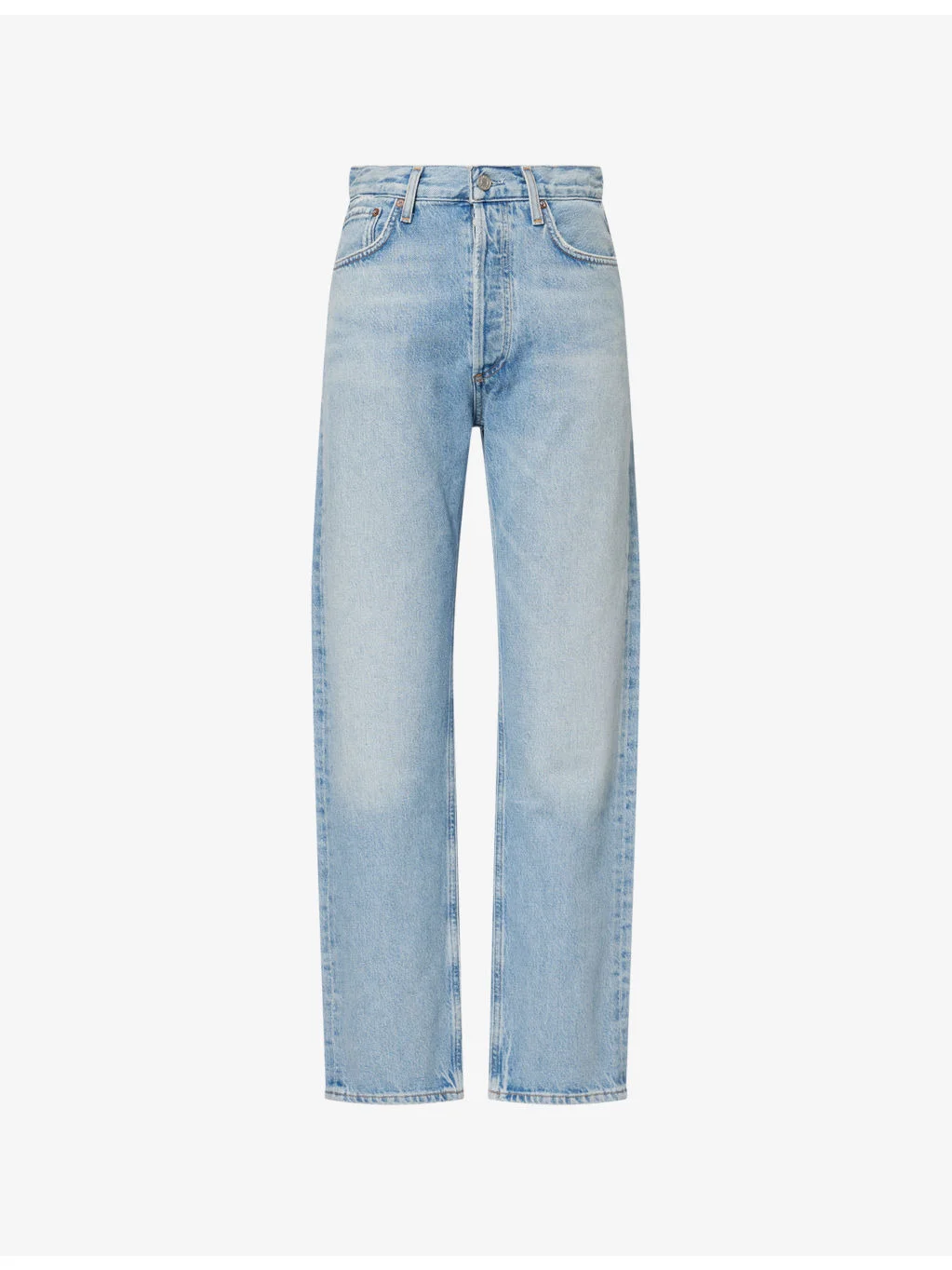 PRODUCT DETAILS - AGOLDE denim jeans - 100% cotton - Button and button-fly fastening - Regular fit, straight leg, high-rise pinch waist, belt loops, five pockets - Machine wash cold - Made in Turkey - True to size - Size 26: rise 12in / 30.5cm, inside leg 30in / 76cm, leg opening 15in / 38cm - Model is 5ft 10in/1.78m and wears a size 26 - Midweight, non-stretch Ref: R04586950