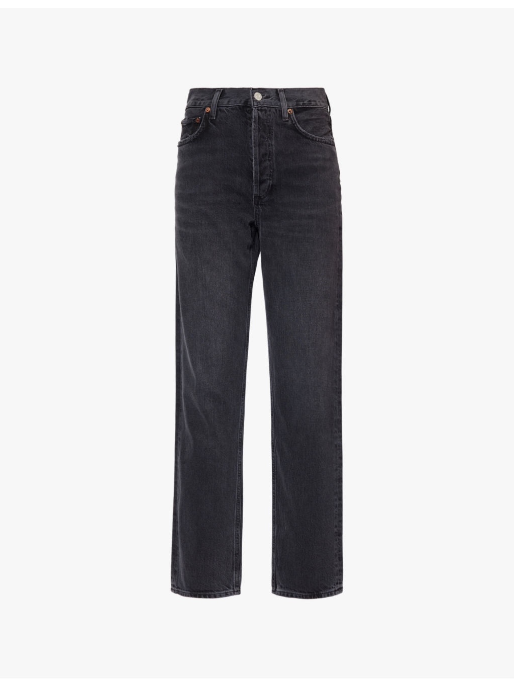 PRODUCT DETAILS - AGOLDE denim jeans - 100% regenerative cotton - Button and button-fly fastening - Regular fit, high rise, straight leg, structured waistband with belt loops, five pockets, faded wash - Machine wash cold - Made in Turkey - True to size - Size 26: rise 12in / 31cm, inside leg 29in / 74cm, leg opening 15in / 38cm - Model is 5ft 10in/1.78m and wears a size 26 - Midweight, non-stretch Ref: R04342854
