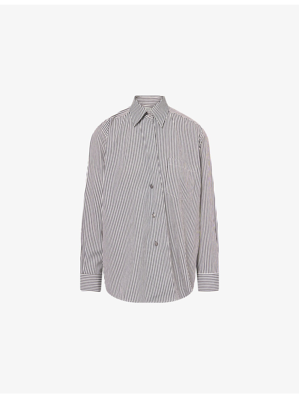 PRODUCT DETAILS - AGOLDE poplin shirt - 88% viscose, 12% polyamide - Button fastening at front - Relaxed fit, classic collar, long sleeves, buttoned cuffs, patch pocket at chest, all-over striped pattern - Hand wash - Made in Turkey - True to size - Size small: length 28.5in / 72cm - Model is 5ft 10in/1.78m and wears a size small - Lightweight, non-stretch Ref: R04487017