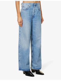 PRODUCT DETAILS - AGOLDE organic-cotton, recycled-lyocell and recycled-cotton blend denim jeans - 67% organic cotton, 22% recycled lyocell, 11% recycled cotton - Concealed button and button-fly fastening at front - Relaxed fit, high-rise, wide leg, belt loops, five pockets, faded wash and whiskering, straight cuffs - Machine wash cold - True to size - Size 26: rise 14in / 37cm, inside leg 29in / 74cm, leg opening 20in / 51cm - Model is 5ft 11in/1.80m and wears a size 26 - Midweight, slight stretch