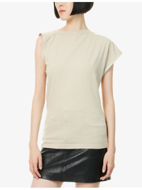 PRODUCT DETAILS - AGOLDE cotton-jersey T-shirt - 100% cotton - Relaxed fit, asymmetric round-neck, one cap sleeve, darts at back, draped - Machine wash cold - Made in USA - True to size - Model is 5ft 10in/1.78m and wears a size small - Lightweight, stretchy Ref: R04487021