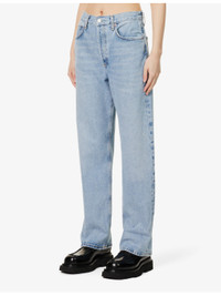 PRODUCT DETAILS - AGOLDE recycled denim jeans - 100% recycled cotton - Button and button-fly fastening - Regular fit, mid-rise, straight leg, structured waistband with belt loops, five pockets, light-faded wash, contrast stitching, branded hardware - Machine wash cold - True to size - Size 26: rise 11in / 28cm, inside leg 30.5in / 77cm, leg opening 17in / 43cm - Model is 5ft 10in/1.78m and wears a size 26 - Midweight, non-stretch Ref: R04274300