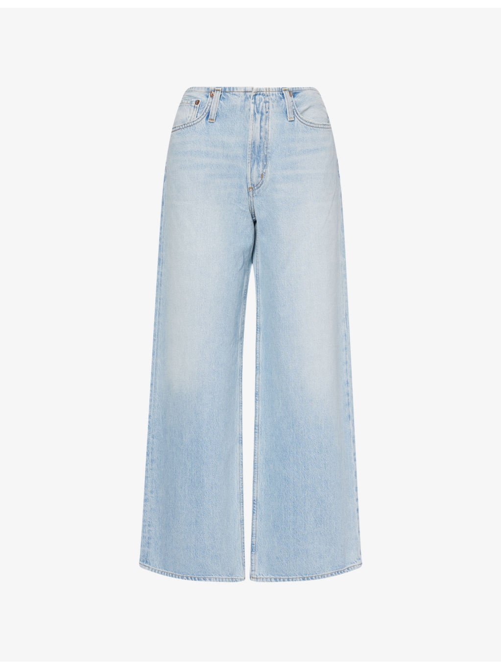 PRODUCT DETAILS - AGOLDE denim jeans - 100% cotton - Button, hook-and-eye and zip-fly fastening - Relaxed fit, mid-rise, wide leg, belt loops at waist, structured waistband with belt loops, five pockets, light-faded wash, contrast stitching, branded hardware - Machine wash cold - Made in Turkey - True to size - Size 26: rise 11.5in / 29cm, inside leg 31in / 79cm, leg opening 22in / 56cm - Model is 5ft 10in/1.78m and wears a size 26 - Midweight, non-stretch Ref: R04473482