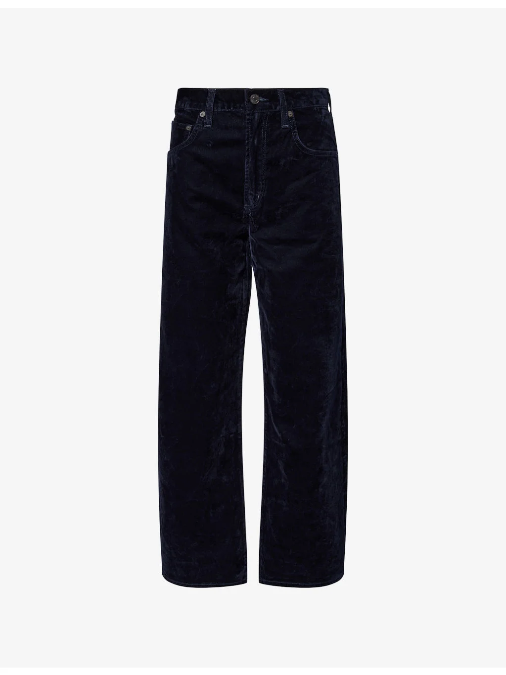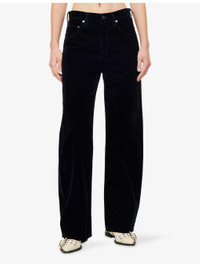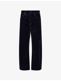 PRODUCT DETAILS - AGOLDE cotton-blend jeans - 84% cotton, 16% viscose - Exposed button and concealed zip-fly fastening at front - Relaxed fit, high-rise, wide-leg, belt loops, five pockets, all-over velvet texture - Machine wash cold - Made in Turkey - True to size - Size 26: rise 12in / 31cm, inside leg 30in / 76cm, leg opening 20in / 51cm - Model is 5ft 10in/1.78m and wears a size 26 - Lightweight, non-stretch Ref: R04540932