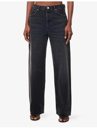 PRODUCT DETAILS - AGOLDE denim jeans - 100% cotton - Exposed button and concealed button-fly fastening at front - Relaxed fit, low-rise, wide leg, structured waistband with belt loops, classic five pockets, branded silver and copper-toned hardware, whiskering, V-shaped yoke at back - Machine wash at 30°C - Made in Turkey - True to size - Size 26: rise 11in / 28cm, inside leg 30.5in / 77.5cm, leg opening 21in / 53cm - Model is 5ft 10in/1.78m and wears a size 26 - Midweight, non-stretch Ref: R04491119