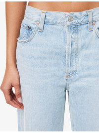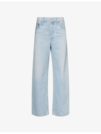 PRODUCT DETAILS - AGOLDE denim jeans - 100% cotton - Exposed button and concealed button-fly fastening at front - Relaxed fit, low-rise, wide leg, structured waistband with belt loops, classic five pockets, branded silver and copper-toned hardware, light wash and whiskering, V-shaped yoke at back - Machine wash cold - Made in USA - True to size - Size 26: rise 12in / 30cm, inside leg 30in / 76cm, leg opening 20in / 50.5cm - Model is 5ft 10in/1.78m and wears a size 26 - Midweight, non-stretch Ref: R04460478